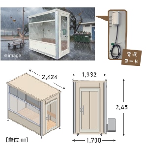 A. | 現地の状況によりますが、約1時間で設置が完了します。 電気工事は不要ですので、すぐご利用いただけます。 |