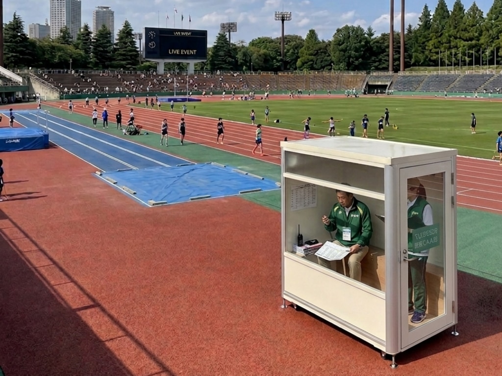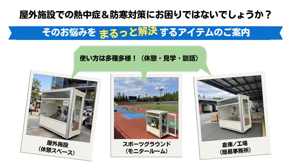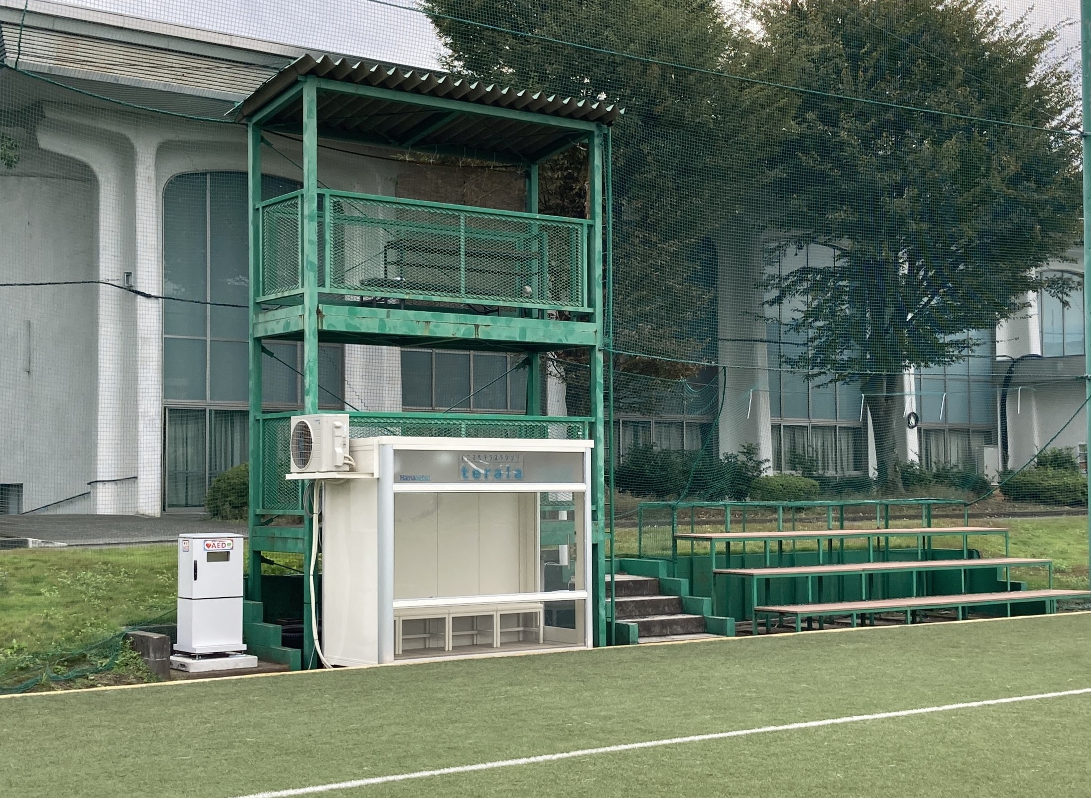体育会の部活動の際の熱中症対策として、ラグビー用のグラウンドサイドに設置して試験使用しました。選手のみならず、コーチ陣やマネージャーの方々が、色々な用途で使用されています。データ解析チームが練習・試合の際に、室内からプレイを見ながら解析を行うようなご利用もあり、エアコンが効いているので、夏に限らず通年で活用されています。
